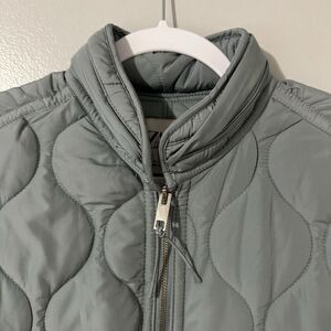 ZARA Women's Quilted Puffer Vest Size L Mock Neck Pockets Hidden Hoodie Gray