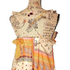 ZARA Womens Regular Patchwork Paisley Ruffle Maxi Dress Boho Orange Size XXS New