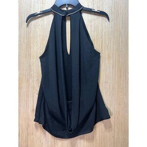 • ZARA - Women's Rhinestone Diamond Crystal Backless Draped Halter Top - Black