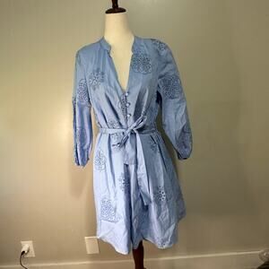 ZARA Women's Rubberized Embroidery Poplin Dress Size M In Sky Blue