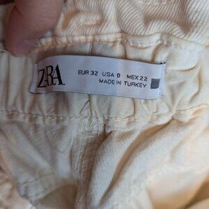 ZARA Women’s Size 0 Cream High-Rise Baggy Paperbag Tapered Cropped Denim Jeans