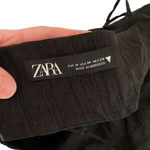 ZARA Womens Size Medium Mini Dress Slit Black Square Neckline Spaghetti Strap