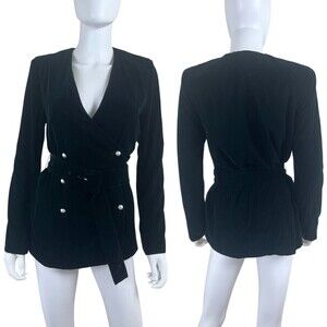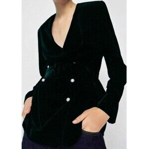 ZARA Women's Size XS Velvet Green Belted Pearl Button NEW Blazer Jacket Holiday