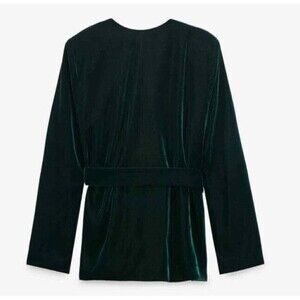 NWT ZARA Velour Emerald Green Belted Pearl Button Blouse