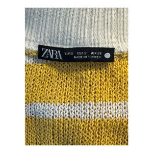 ZARA Women’s Small Yellow and White Striped Knit Rustic Sweater Vest Oversized