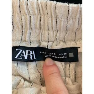 ZARA Women's Striped Straight Leg Trousers Pants Elastic Waist White Size Small