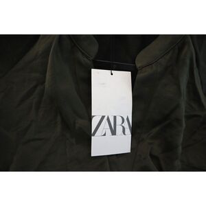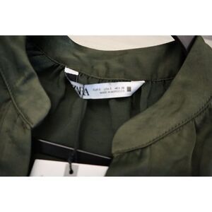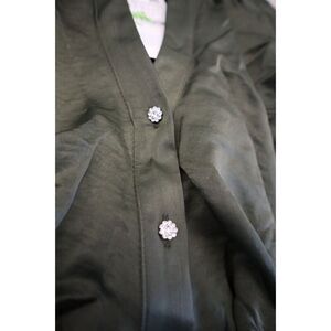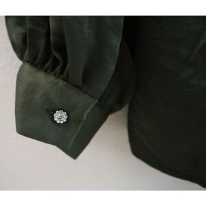 ZARA Women's Sz Small Hunter Green Jewel Button Ruffled Satin Effect L/S Blouse