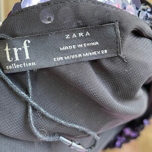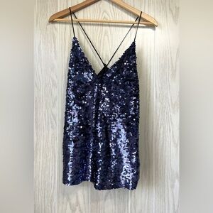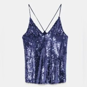 ZARA Women's Top Blue Purple Sequin Party Cami Tank Blogger V Neck Size M NWOT