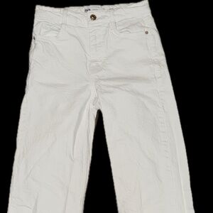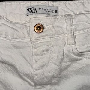 Minimal, crisp white denim from ZARA featuring a high-rise waist, straight-leg silhouette, and gold-tone hardware. Flattering structured fit with classic 5-pocket styling. In great condition with no major flaws — a perfect neutral staple.