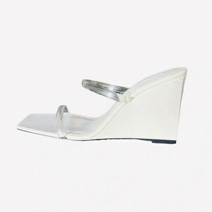 The Orb Square Toe Sandals are the perfect pair of sandals to freshen up your style. This two-band clear straps slip on in white features a stylish square open toe and a 4” wedge heel.