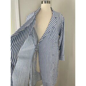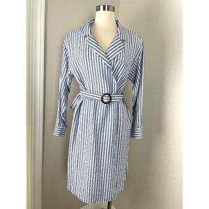 ZARA Womens XS Striped Button Up Wrap Dress With Belt Long Sleeve Business
