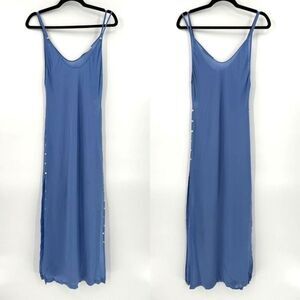 ZARA Womens Sheer Slip Side Button Slit Hem Maxi Dress Periwinkle Blue Medium