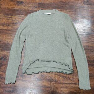 ZARA Wool Alpaca Blend Lightweight Base Layer Ruffled Hem Sweater Women's Small