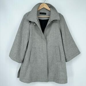 ZARA Wool Blend Cape Coat Buckle Poncho Jacket Funnel Neck Gray