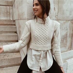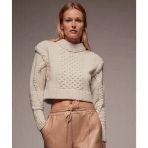 ZARA Wool Blend Cropped Sweater Mock Neck Cable Knit, Bloggers fav