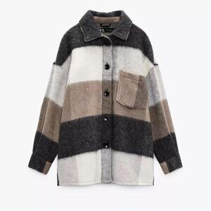 ZARA Wool Fringed Button Up Shacket with Patch Pockets