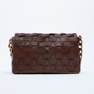 Woven Sheep Leather shoulder bag with thick chain strap. Interior lining with pocket. Magnetic clasp closure