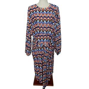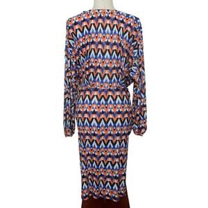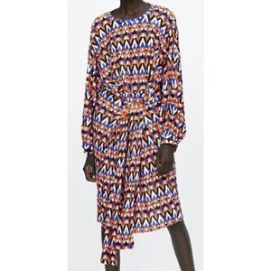 ZARA Wrap Dress Women’s Sz Small Oversized Blue Orange Geo Print Sheath Modern