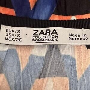 ZARA Wrap Dress Women’s Sz Small Oversized Blue Orange Geo Print Sheath Modern