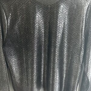 Elevate your wardrobe with this stunning extra-large metallic knit top from ZARA. Features a soft, lightweight feel with a chic sheer finish and geometric pattern. Stylishly see-through—perfect for layering over a cami or bralette. Elegant shimmer that transitions effortlessly from day to night.
