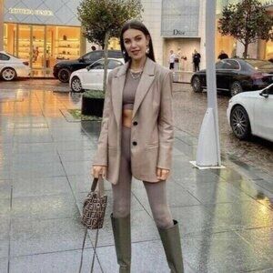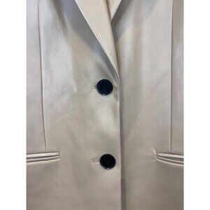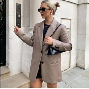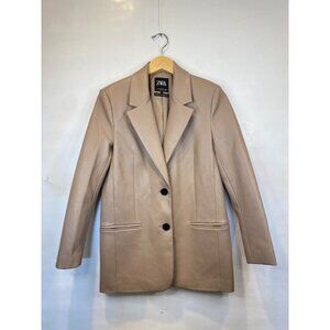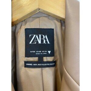 ZARA XS Faux Leather Oversized Blazer Jacket 2 Button Tan Brown Mid Length GUC