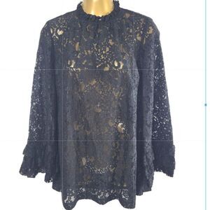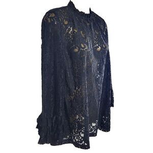ZARA X-Small Sheer Black Lace Blouse Pullover Bell Sleeves 3 Tiered Lace Cuff