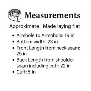 Measurements | Approximate | Made laying flat