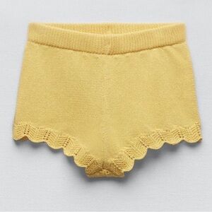 ZARA YELLOW Butter Scalloped Crochet KNIT SHORTS Women’s S Boho Festival Spring