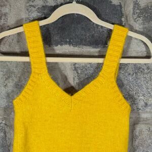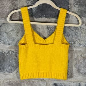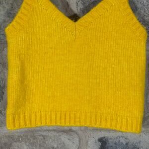 ZARA Yellow Knit Cropped Tank Top Medium Fuzzy Sleeveless V Neck Y2K Cottagecore