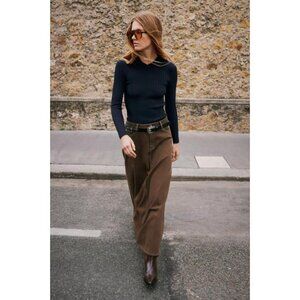 ZARA Z1975 DENIM MIDI TIERED SKIRT
