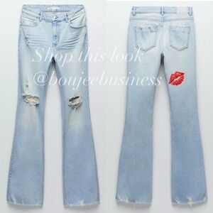 ZARA Z1975 Light Blue High Rise Flared Jeans Size 6 Flared Leg BNWT
