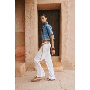 Collared, short sleeve shirt with a V-neck. Featuring front patch pockets and a metal button fastening.