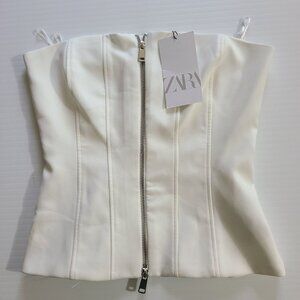 ZARA ZIPPER BANDONE TOP WHITE SIZE S | 3067/068