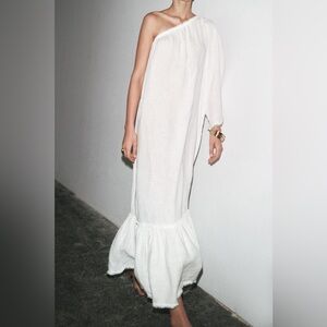 ZARA ZW COLLECTION 100% LINEN ASYMMETRIC DRESS