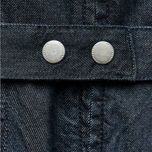 Denim midi dress. Round neckline. Side pockets. Self belt with snap buttons. Asymmetric hem. Front metal zip closure.