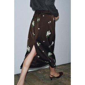 ZARA WOMAN COLLECTIONMidi skirt with a mid-rise waist and elastic waistband. Features floral embroidery with sequin appliqués. Straight hem.