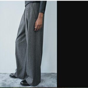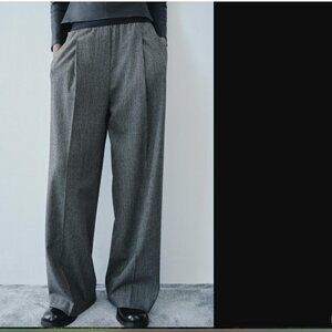 ZARA ZW COLLECTION WOMEN ANTHRACITE GRAY PANTS WITH CONTRAST BELT SIZE M NWOT