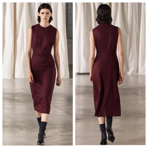ZARA ZW COLLECTION Wool Blend Sheath Midi Pencil Dress Burgundy
