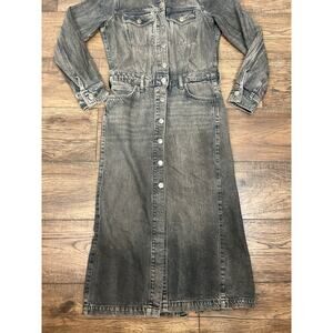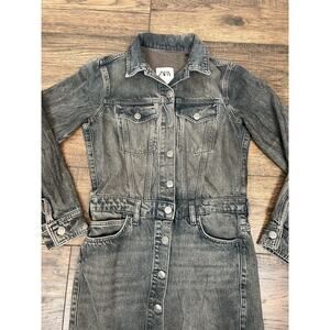 ZARA ZW Collection Cotton Denim Jean Midi Shirt Dress Gray 6840/055 Sz XS