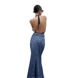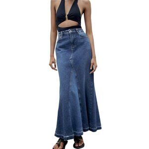 ZARA ZW LONG DENIM SKIRT BLUE SIZE S | 9863/065