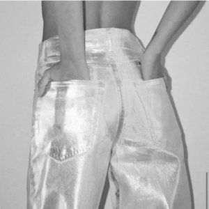 ZARA ZW MID-RISE BOYFRIEND JEANS SILVER