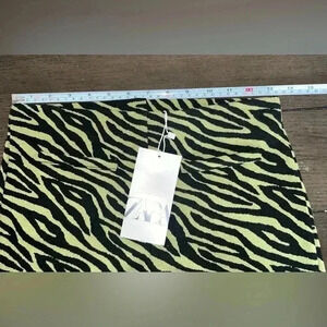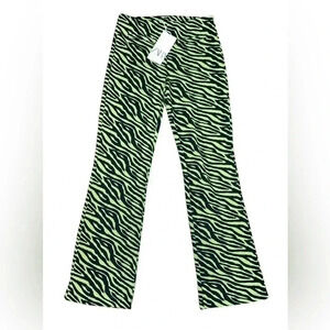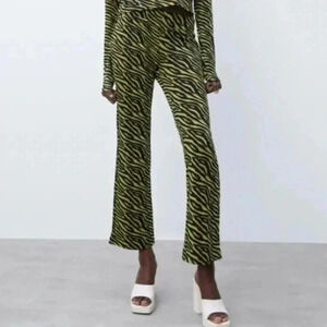 ZARA Zebra Print Jacquard Pants Green Black knit