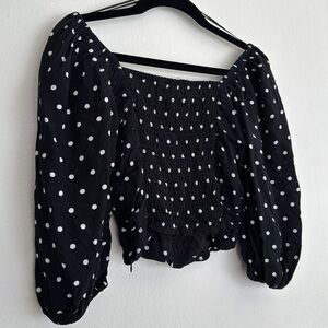 ZARA balloon sleeve black and white polka dot corset crop top size Small