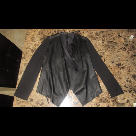 See through black sleeves, with draped front leather and back. Size Medium. Black only worn once.