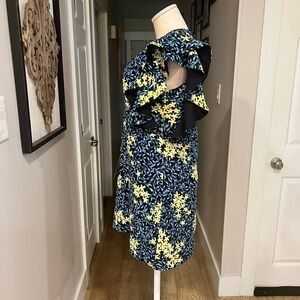 ZARA blue and yellow flower clusters pattern mini dress with ruffled sleeves