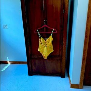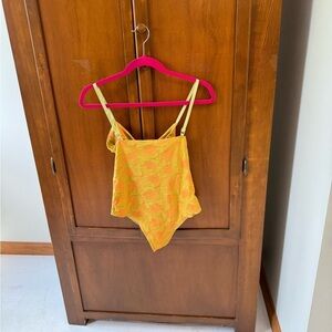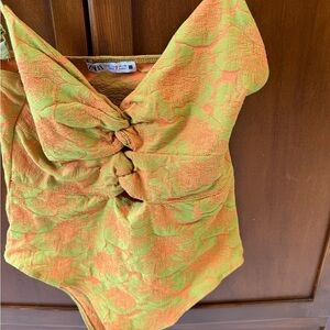 ZARA bodysuit adjustable spaghetti strap SM ruched front cut out 15in pit
