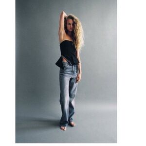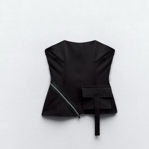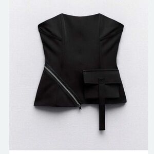 Zara bustier corset style strapless top with zipper and pocket detailing. Length- 15.5” S Pit to pit- 14”
