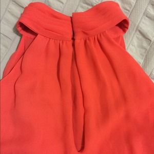 Flowy coral dress, only worn once to a wedding. Great for dancing and eating in!! No visible signs of wear. It's lined so no worrying about seeing your bra or panties! Thin keyhole opening at upper back, with two small buttons as the closure on the collar (back of neck). No other zippers or buttons.
