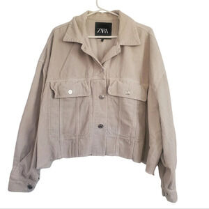 ZARA corduroy distressed cropped cream color loose fit jacket, size small