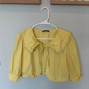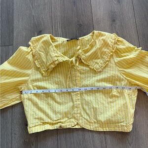 ZARA cotton yellow and white striped dainty crop collar button up size XL